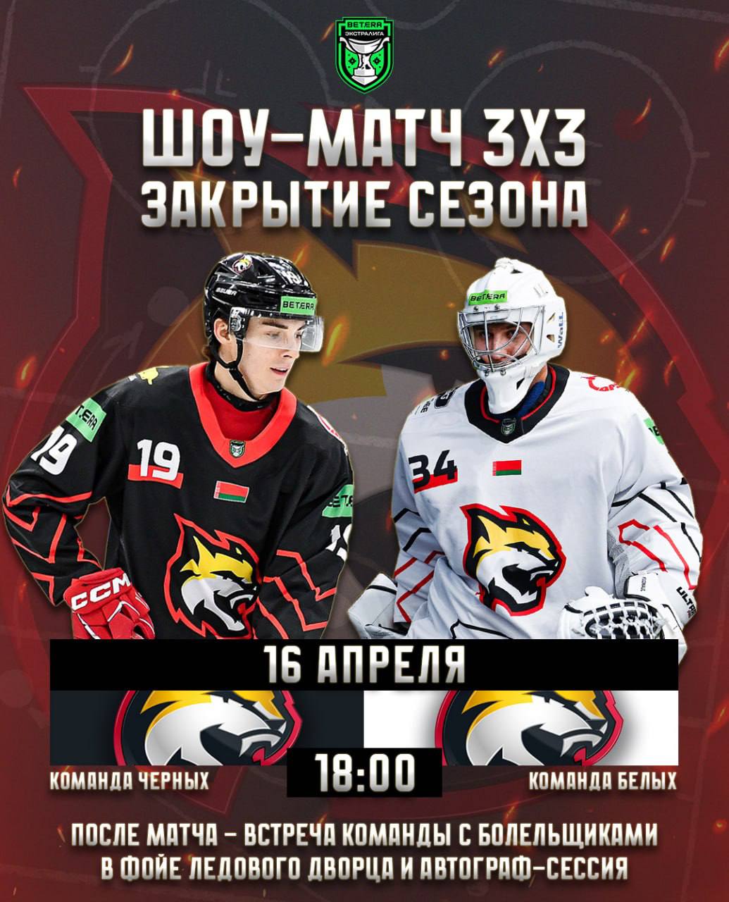 В четверг 16 апреля на лед ледового дворца выйдут игроки «Гомеля», разделенные на две команды – Черные и Белые. Вас ждет яркий поединок, который пройдет в формате 3х3, конкурсы на льду с участием хоккеистов, а после матча в фойе второго этажа пройдет автограф-сессия, где вы сможете пообщаться с игроками и тренерским штабом, а также сделать фото на память с вашими кумирами.