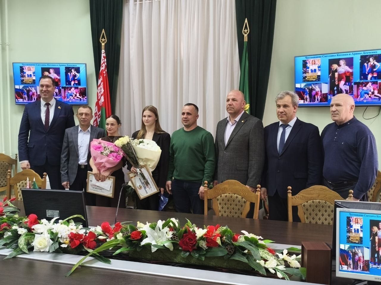 Сегодня в управлении спорта Гомельского облисполкома проходило чествование победительницы чемпионата Европы по борьбе вольной среди молодежи U-23 Демченко Арины, бронзовой призерки чемпионата Европы по борьбе вольной среди молодежи U-23 Светланы Котенко, а также их тренера Смаля Сергея Николаевича.