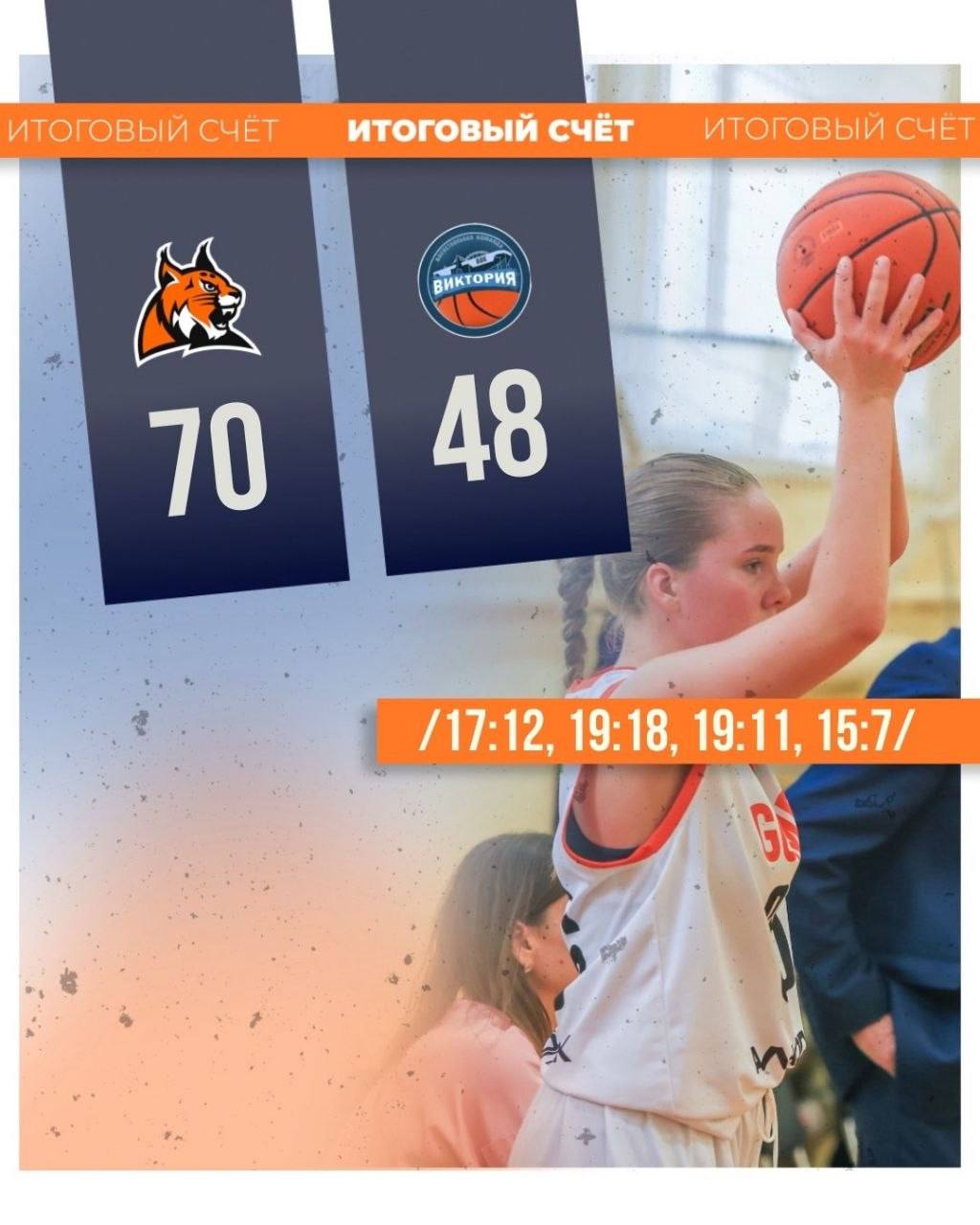 Женская команда «Гомельские рыси» одержала победу над БОК «Виктория» со счетом 70 : 48 (17:12, 19:18, 19:11, 15:7).